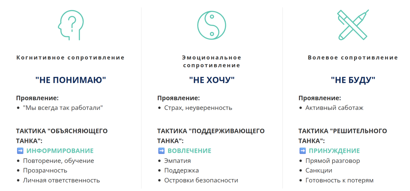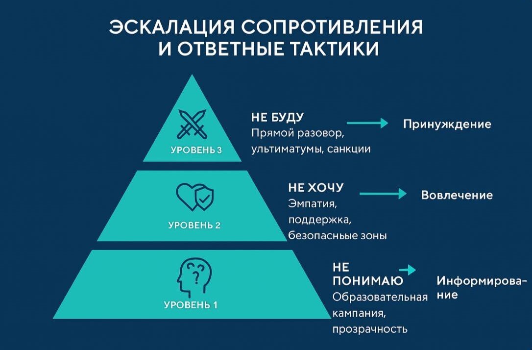 Проявление: Сотрудники не понимают, зачем нужны изменения. «Мы всегда так работали, и все было хорошо».